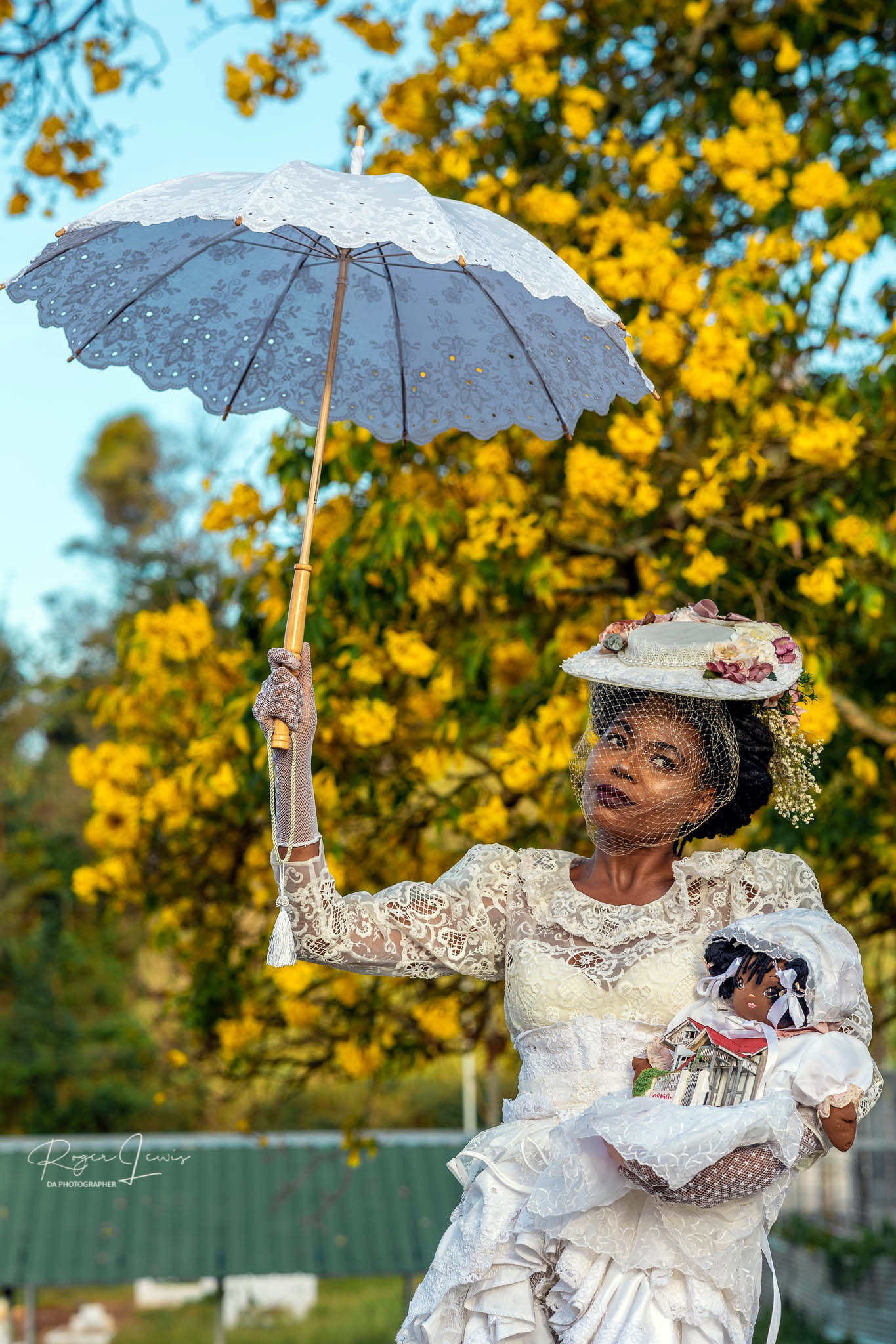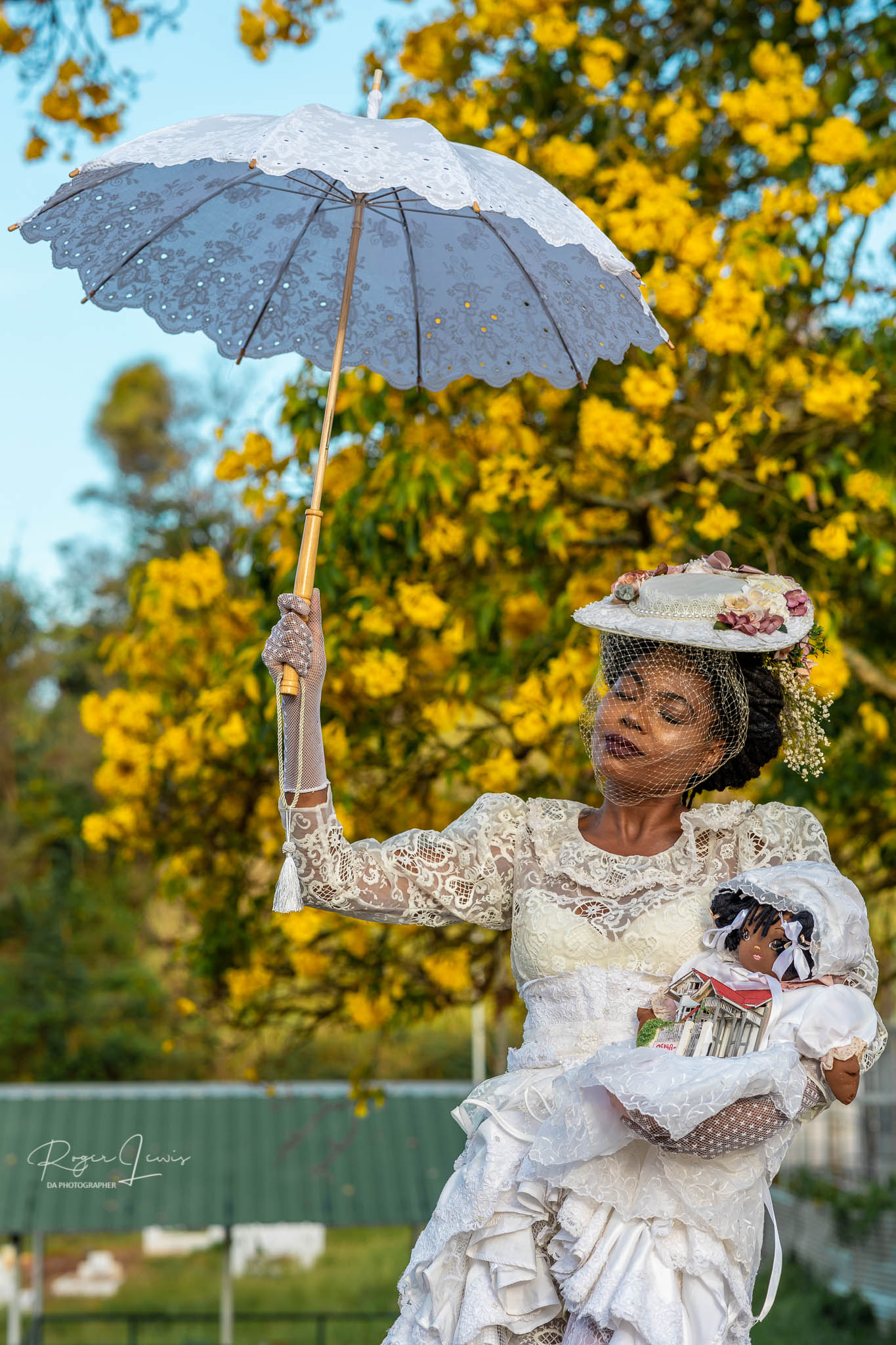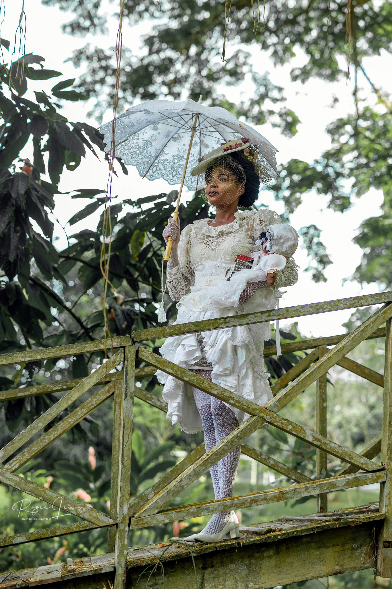 Once when she wanted a holiday, Dolly Ma decided to spend some time in Lopinot with one of her doll children. The Rosa de Oxalà dressed herself and the baby in fine white laces from her trousseau. She transported herself to the village via a magical parasol that lifted her and the little one into the air. After floating gently on the breeze across to the village, she landed on the bridge at La Reconnaissance Estate and surveyed the property before taking the baby into the house for its nap. The house is over two hundred years old and has many terrifying tales to tell. However, Dolly Ma requested silence so the little doll child would have only sweet dreams.